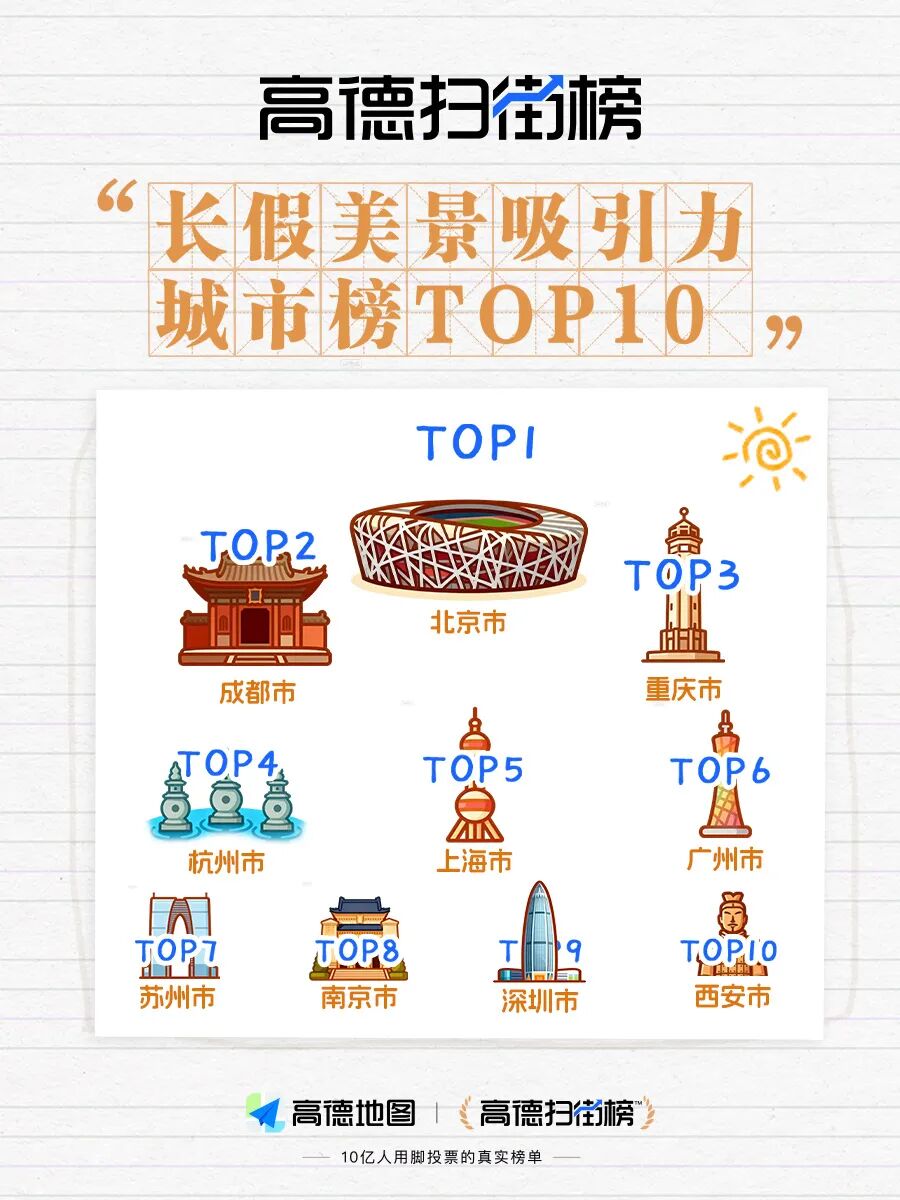 大城市拥有丰富的资源、便利的交通和强大的接待能力,依然是公众长假出游的主要选择。全国《长假景点吸引力城市排行榜》的前20名依次是:北京、成都、重庆、杭州、上海、广州、苏州、南京、深圳、西安、天津、武汉、青岛、长沙、宁波、福州、无锡、东莞、大连、惠州,均为一线和二线城市。