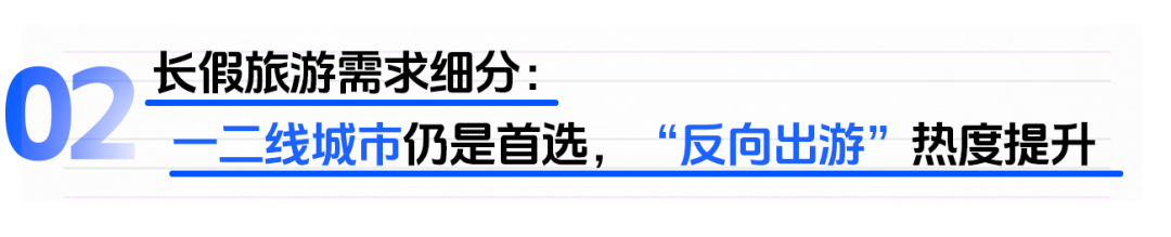 与此同时,越来越多的年轻人选择远离大城市的热门目的地,“反向出游”到县域。相比一二线热门城市,长假期间这些县域游客相对较少,文化遗产或自然风光的特色突出,有烟火气但消费水平不高,很符合年轻人对性价比的追求。
